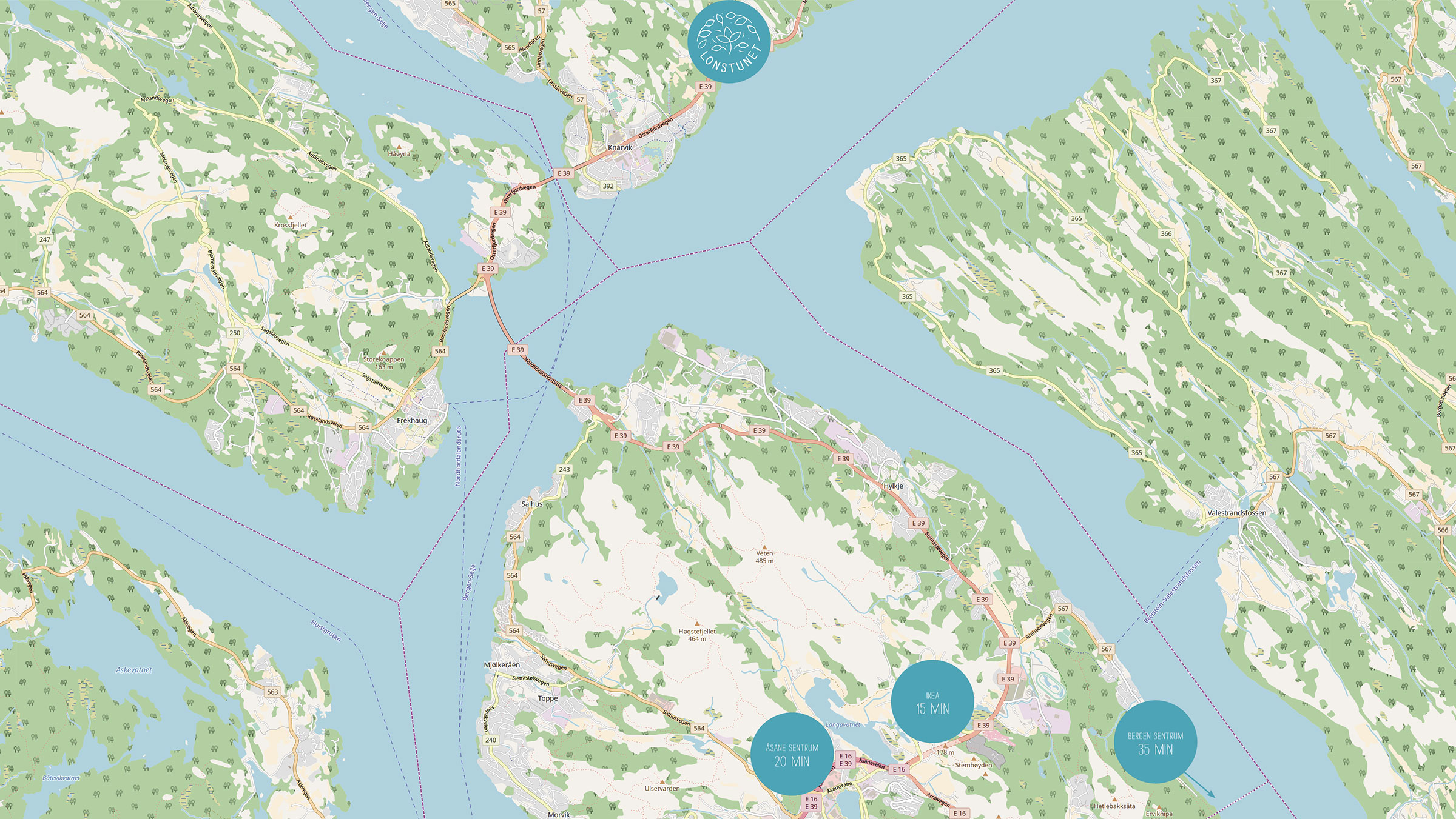 Lonstunet er et nytt boligprosjekt i Nordhordland, sentralt beliggende i utkanten av Knarvik sentrum. Her bygger vi 24 leiligheter og 20 rekkehus, med et vidt spenn i størrelser og leilighetstyper. Natur og turområder blir din nærmeste nabo – likevel er det bare noen minutter å rusle ned til det stadig mer urbane Knarvik sentrum. Det beste av to verdener!